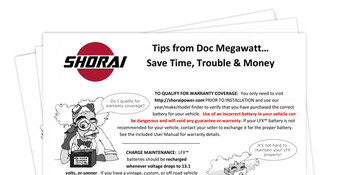 SHORAI LFX Lithium-Iron Powersports battery, 24Ah PbEq 12V eq, "L" polarity, Case Type 3 Length 6.55" Width 3.39" Height 6.10" Shorai Batteries require a charging system output of 13.1 Volts or higher at idle, and must not exceed 15.2 volts at maximum output.